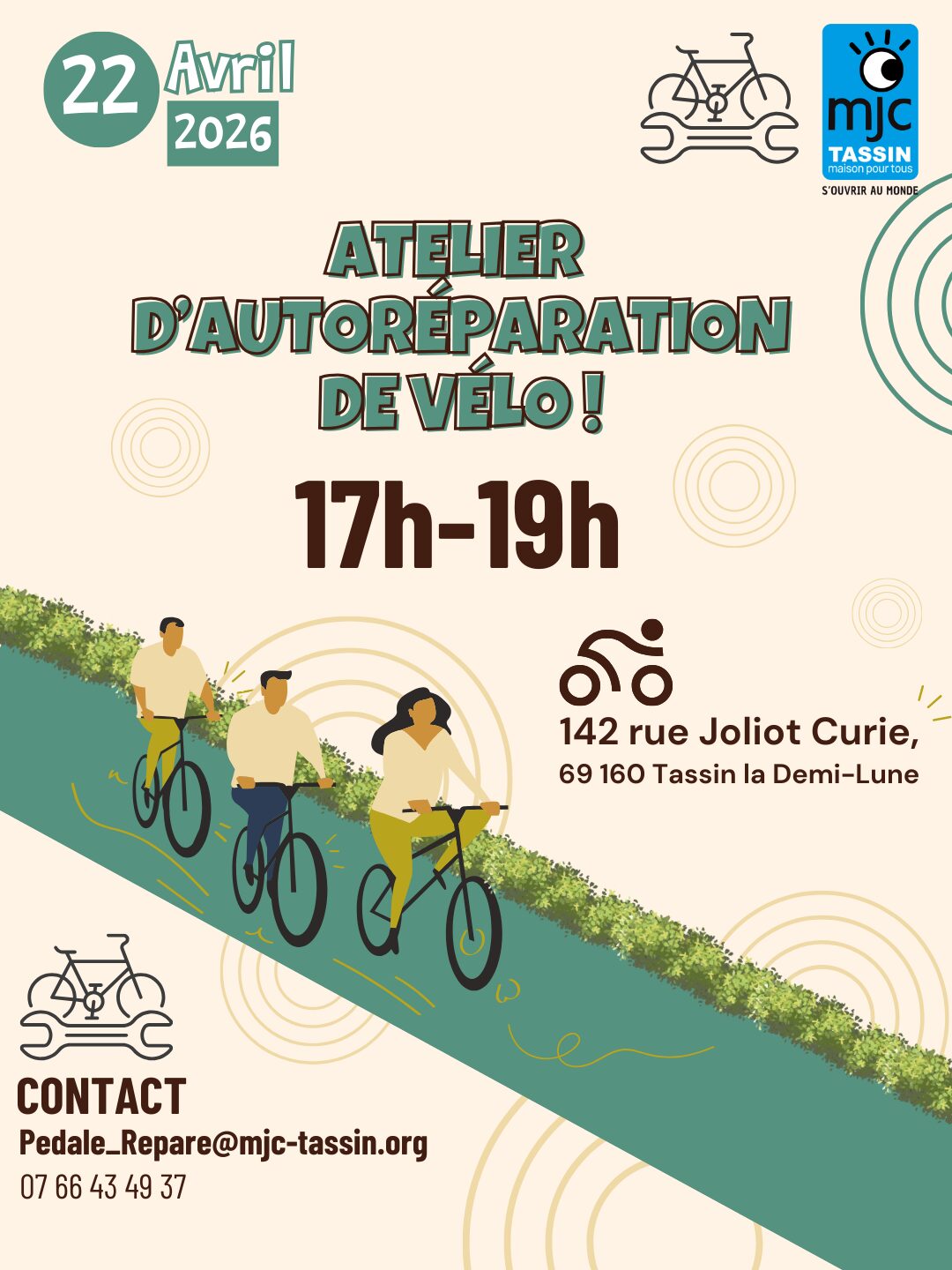 📧 pedale_repare@mjc-tassin.org 📞 07 66 43 49 37