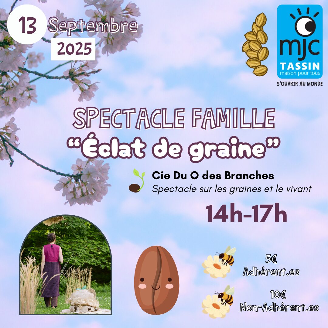 C’est la rentrée à la MJC ! 🎈 Venez nous rencontrer le 6 septembre lors de notre Journée Portes Ouvertes pour découvrir toutes nos activités. Puis, prolongez la magie le 13 septembre avec un moment suspendu en famille : le spectacle « Éclat de Graine », une aventure poétique à partager avec les petits et les grands !
